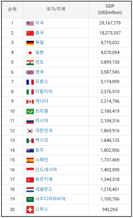2024 세계 GDP 순위 TOP 20